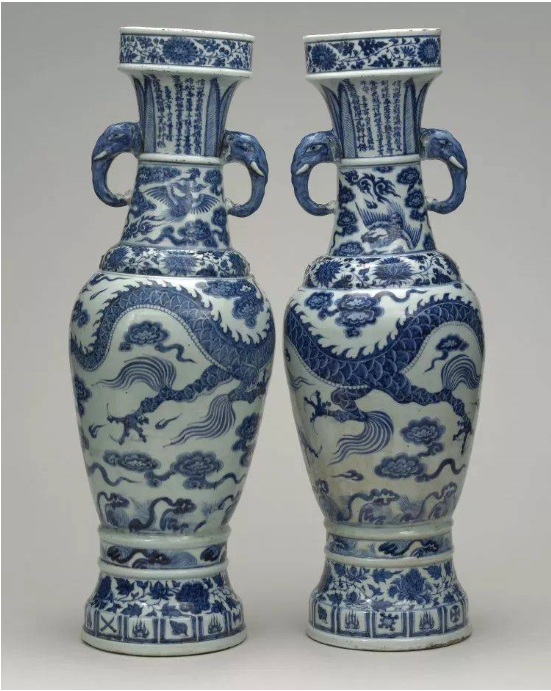 如此珍稀的顏料,自然被當時的生產者及權貴奉為至寶,被專門用於官窯中大小不同的青花瓷器的描繪。其中以大型器物,如大罐、大梅瓶上所表現出的特徵最為亮麗。