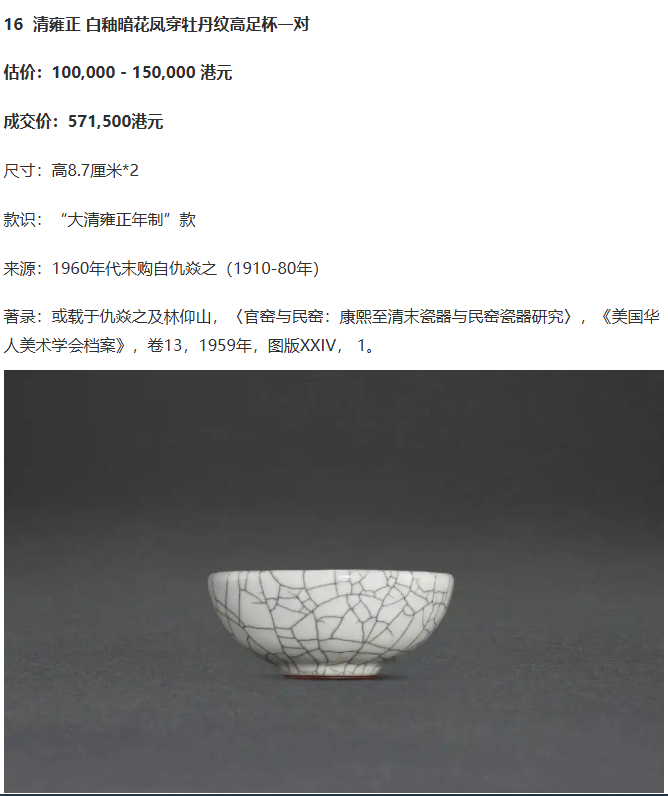 首页未分类2024 香港蘇富比古董拍賣成交價未分类 2024 香港蘇富比古董拍賣成交價 duolutai2 月 前2 月 前37 意见0 条评论 WhatsApp+85246400204LINE+85246400204 Gmail+buic08320@gmail.com 聯繫人:黃生 852+46400204 股票 上一篇文章 國際拍賣成交的元青花鑑賞 — 為何元青花最為珍貴?下一篇文章蘇富比古董拍賣成交價(部分) Related Posts 未分类 多禄溙拍賣行,為何說是全球拍卖业的标杆 duolutai2 月 前 未分类 從蘇富比、多祿溙(Dolce & Gabbana 藝術與奢侈品收藏板塊)、佳士德 看當下拍賣市場的「暗流」 duolutai1 月 前 未分类 官窯瓷器與青花:歷代經典與收藏價值 duolutai1 月 前 未分类 2025 多祿溙香港國際拍賣陶瓷及古董藏品徵集盛啟 duolutai2 月 前 未分类 古人好玉,拍賣市場也好玉 duolutai1 月 前 未分类 世界第一枚郵票價值達百萬美金? duolutai1 月 前 显示评论 (0) 发表回复 取消回复您的邮箱地址不会被公开。 必填项已用 * 标注 在此浏览器中保存我的显示名称、邮箱地址和网站地址,以便下次评论时使用。