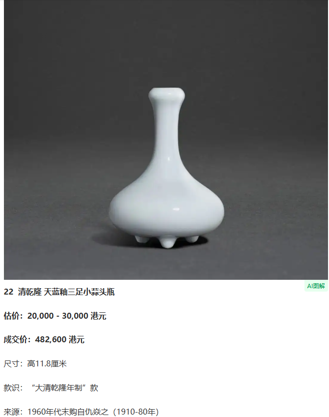 首页未分类蘇富比古董拍賣成交價(部分)未分类 蘇富比古董拍賣成交價(部分) duolutai2 月 前2 月 前31 意见0 条评论 WhatsApp+85246400204LINE+85246400204 Gmail+buic08320@gmail.com 聯繫人:黃生 852+46400204 股票 上一篇文章2024 香港蘇富比古董拍賣成交價下一篇文章最新:伦敦佳士得古董瓷器成交记录 Related Posts 未分类 明代成化鬥彩雞缸杯以 2.8124 億港元成交 duolutai1 月 前 未分类 多禄溙拍賣行,為何說是全球拍卖业的标杆 duolutai2 月 前 未分类 欣賞價值連城-玉器篇 duolutai2 月 前 未分类 如何讓自己的藏品在拍賣會拍出高價 duolutai2 月 前 未分类 成交記錄 duolutai2 月 前 未分类 國家寶藏 —— 天津博物館古玉尋蹤 duolutai1 月 前 显示评论 (0) 发表回复 取消回复您的邮箱地址不会被公开。 必填项已用 * 标注 在此浏览器中保存我的显示名称、邮箱地址和网站地址,以便下次评论时使用。