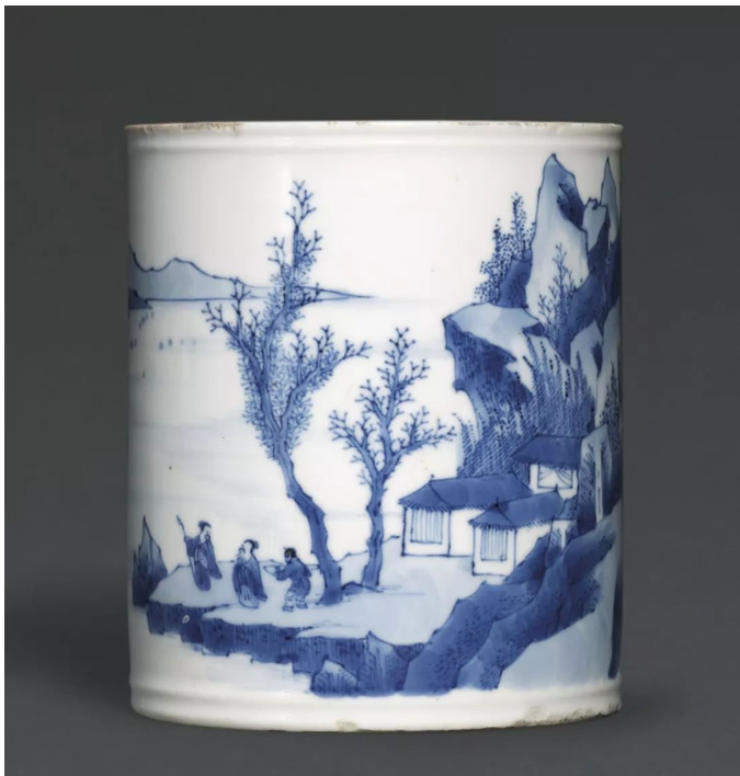 清康熙 青花山水人物圖筆筒 來源: 英國學者詹甯斯(1904-1976)舊藏, 家傳至今