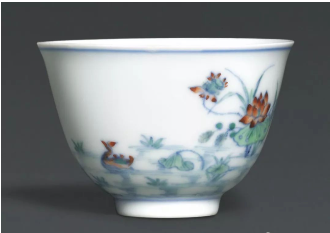 清康熙 鬥彩荷塘鴛鴦紋小杯 雙圈六字楷書款 來源: 英國學者詹甯斯(1904-1976)舊藏, 家傳至今