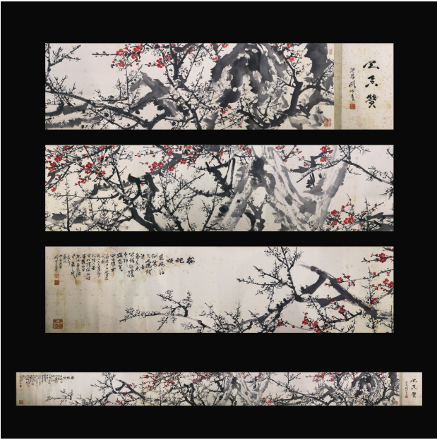 此幅作品長達5.3米的巨作,是20世紀80年代關山月描繪梅花圖的史詩之作,通過剛毅的梅枝與綻放的梅花,生動的展現出梅花不畏寒,梅花品格高的大美意境。