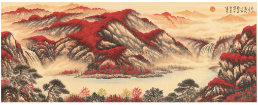 《萬山紅遍》主題是李可染對毛主席的尊重和敬仰,取自毛主席詩詞《沁園春 長沙》“看萬山紅遍,層林盡染”,《萬山紅遍》畫中為表現“層林盡染”的“紅遍”意境,將大量的硃砂,硃磲用於畫面之上。突出“萬山”上“層林”的紅色,使大山得到較好體現,遍山樹葉的“紅”,樹幹於由遠而近溪流天空雲朵上的“白”交相輝映。色調豐富,給人以震撼的視覺衝擊效果,濃郁的色彩表現出了雄渾的意境和大山勁拔的氣勢,營造張揚、奔放、熱烈的氣氛,引起共鳴。李可染一生中多次創作此主題的畫作,收藏價值及其高昂。