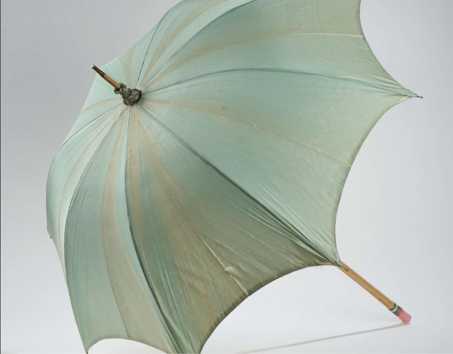 在 19 世紀的歐洲,陽傘是貴族女性重要的時尚配飾,不僅用於遮陽,還體現著佩戴者的身份和品味。茜茜公主熱愛美麗和時尚,陽傘是她出門必不可少的隨身物品之一。尤其是在 1889 年她的兒子魯道夫自殺後,她開始一直穿黑色裝扮,黑裙、黑紗、黑傘、黑手套成了她的標誌,她常用傘遮住臉龐,不願別人看到她老去的容顏。