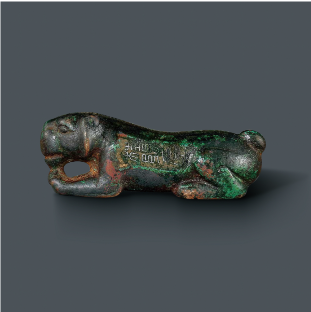 虎符盛行於戰國和秦漢時期,後世虎符多為仿古玩器,無實際功能。本件為明代仿古之作,銅質精純,甚為壓手。外形別致,討喜可愛,十分古雅。