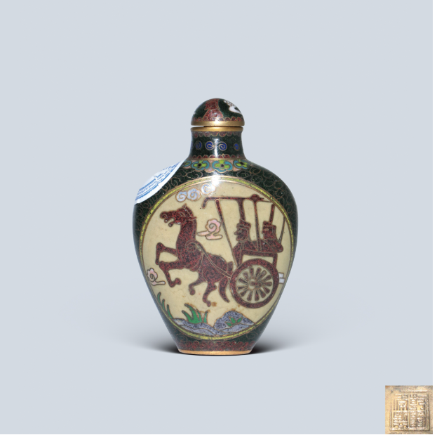 銅胎掐絲琺瑯車馬紋鼻煙壺