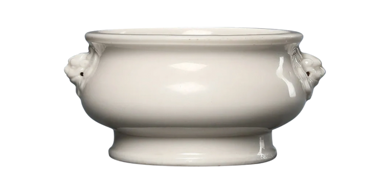 拍品器形、款識均與兩岸故宮博物院藏品相同,束頸,垂腹,圈足,兩側對稱貼塑獅首耳,通體施象牙白釉,釉質滋潤如凝脂,乃明末清初德化窑白瓷之典型特徵。造型典雅莊重,搭配德化白釉,更顯大氣。